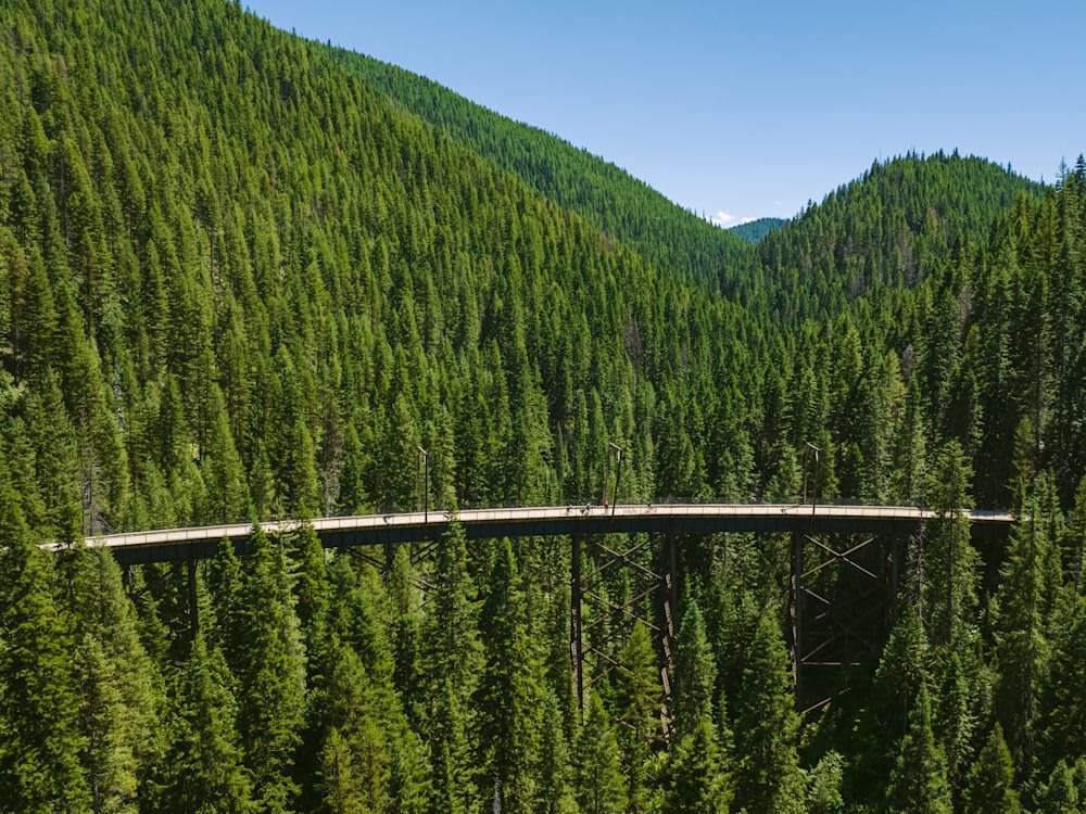 A bucket-list rail trail experience — dramatic trestles, cool mountain tunnels, and sweeping views through the Bitterroot Mountains. It's the kind of ride people talk about for years.